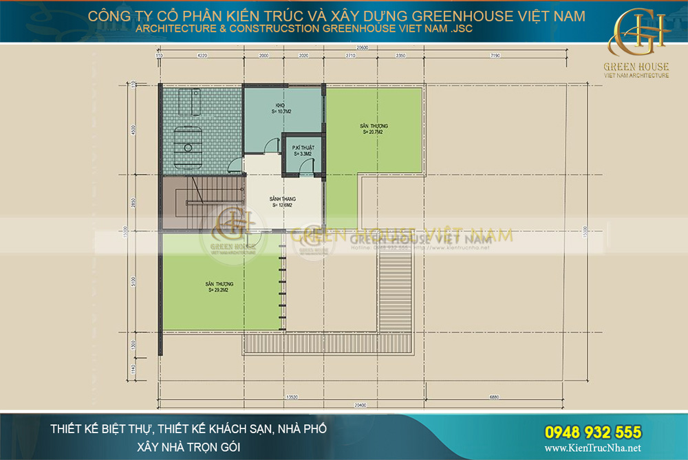 - Công năng tầng 4: Sân thượng, phòng kỹ thuật và nhà kho
