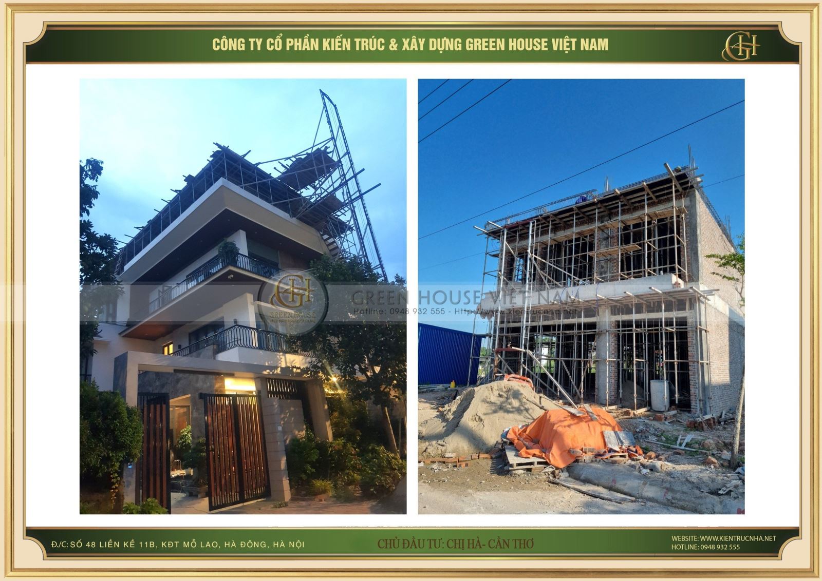 Trong mỗi dự án, Green House Việt Nam luôn đặt tâm huyết của mình vào đó để đem lại cuộc sống viên mãn, trọn vẹn cho gia đình khách hàng cùng kiến trúc độc đáo, bền vững theo thời gian. Hãy liên hệ với Green House Việt Nam theo Hotline : 0948 932 555 ngay hôm nay để biến những ý tưởng, ước mơ về tổ ấm hoàn mỹ của bạn trở thành hiện thực.