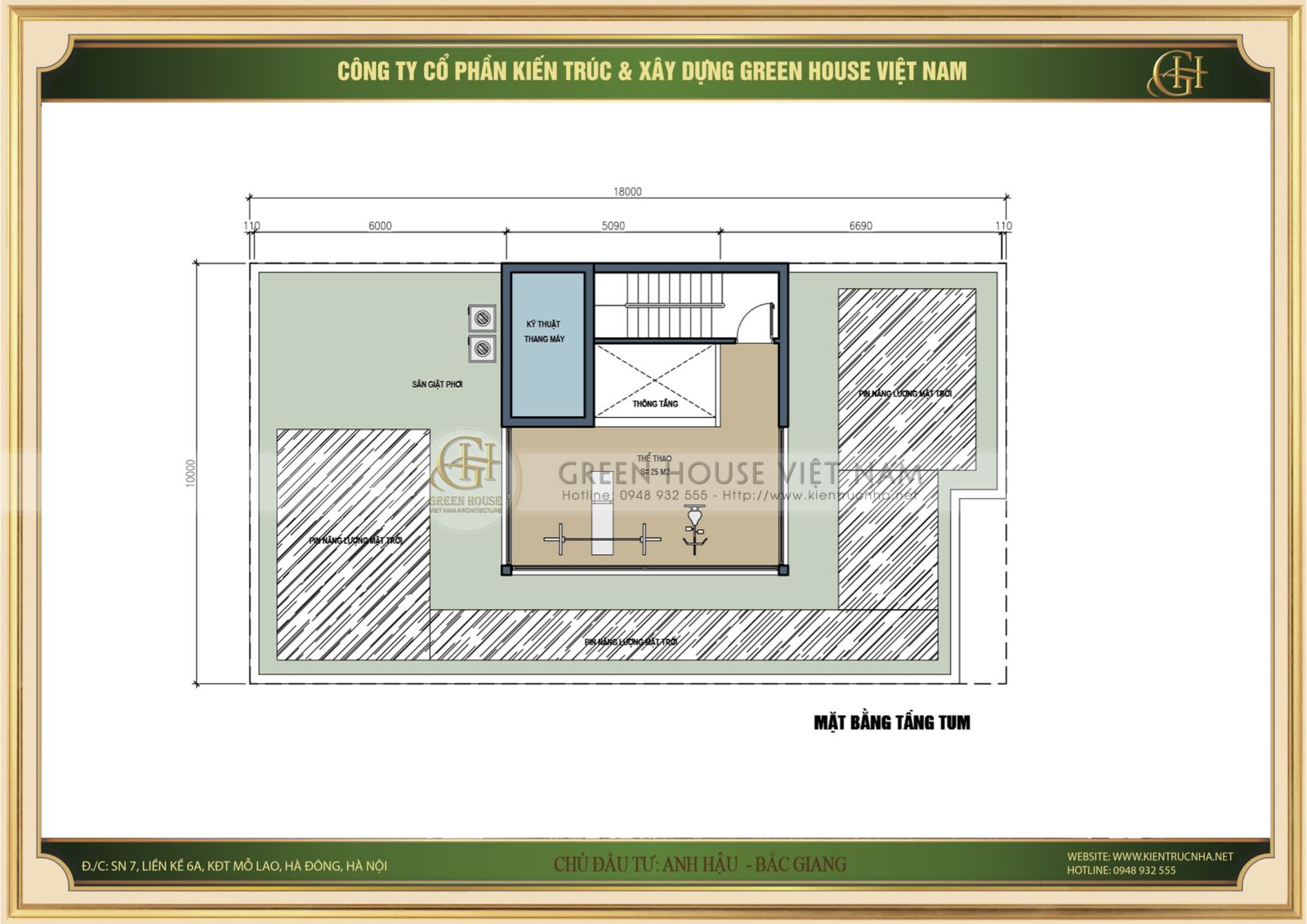 Mặt bằng tầng tum với thiết kế không gian dành cho khu vực pin năng lượng mặt trời