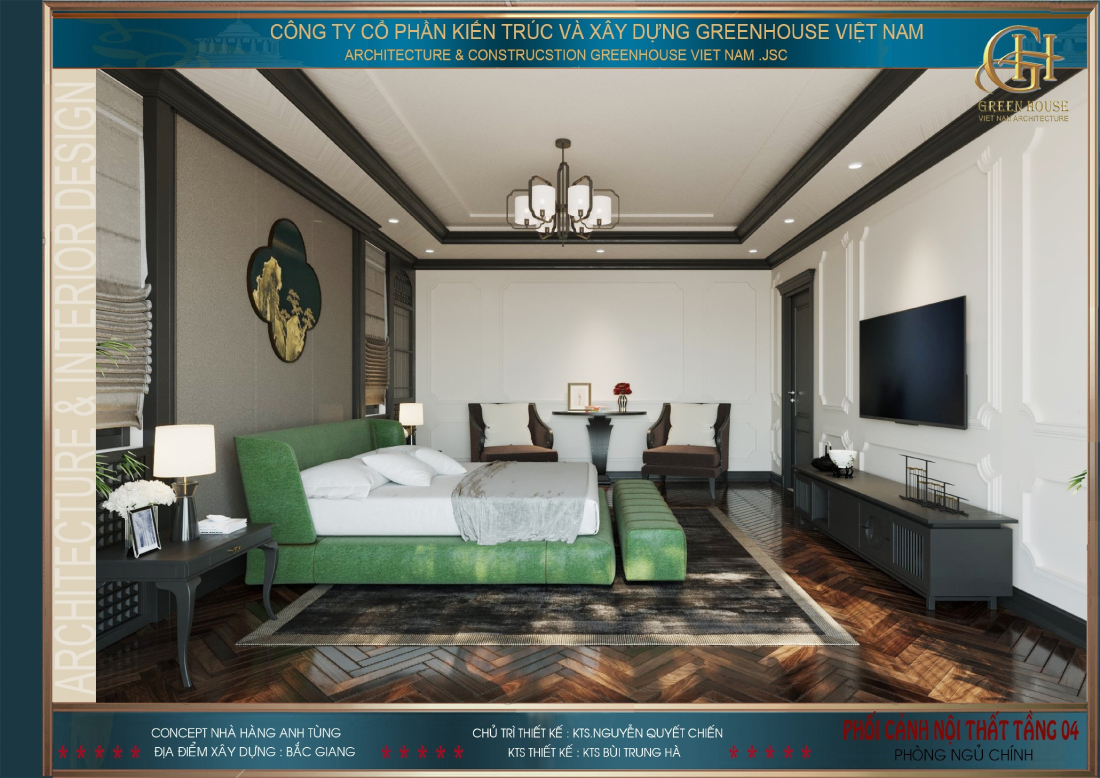Green House Việt Nam tự hào là đơn vị thiết kế và thi công nội thất nhà hàng cao cấp, sang trọng hàng đầu tại Việt Nam. Chúng tôi sở hữu đội ngũ kiến trúc sư giàu kinh nghiệm, am hiểu về lĩnh vực kinh doanh nhà hàng kết hợp với nhà ở. Dự án thiết kế nội thất nhà hàng kết hợp nhà ở phong cách Indochine tại Bắc Giang đã mang đến cái nhìn hoàn hảo và vô cùng hài lòng của gia đình anh Tùng. Không gian nội thất không chỉ đáp ứng về công năng sử dụng thoải mái và tiện nghi, mà nó còn thể hiện gu thẩm mỹ, sự cá tính của gia đình.