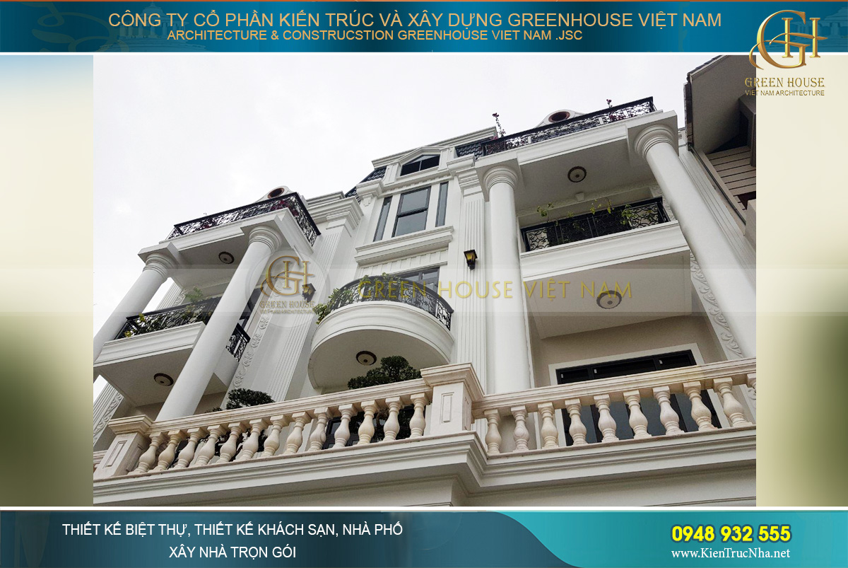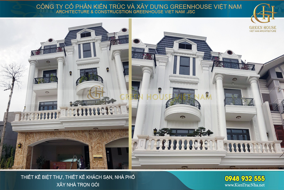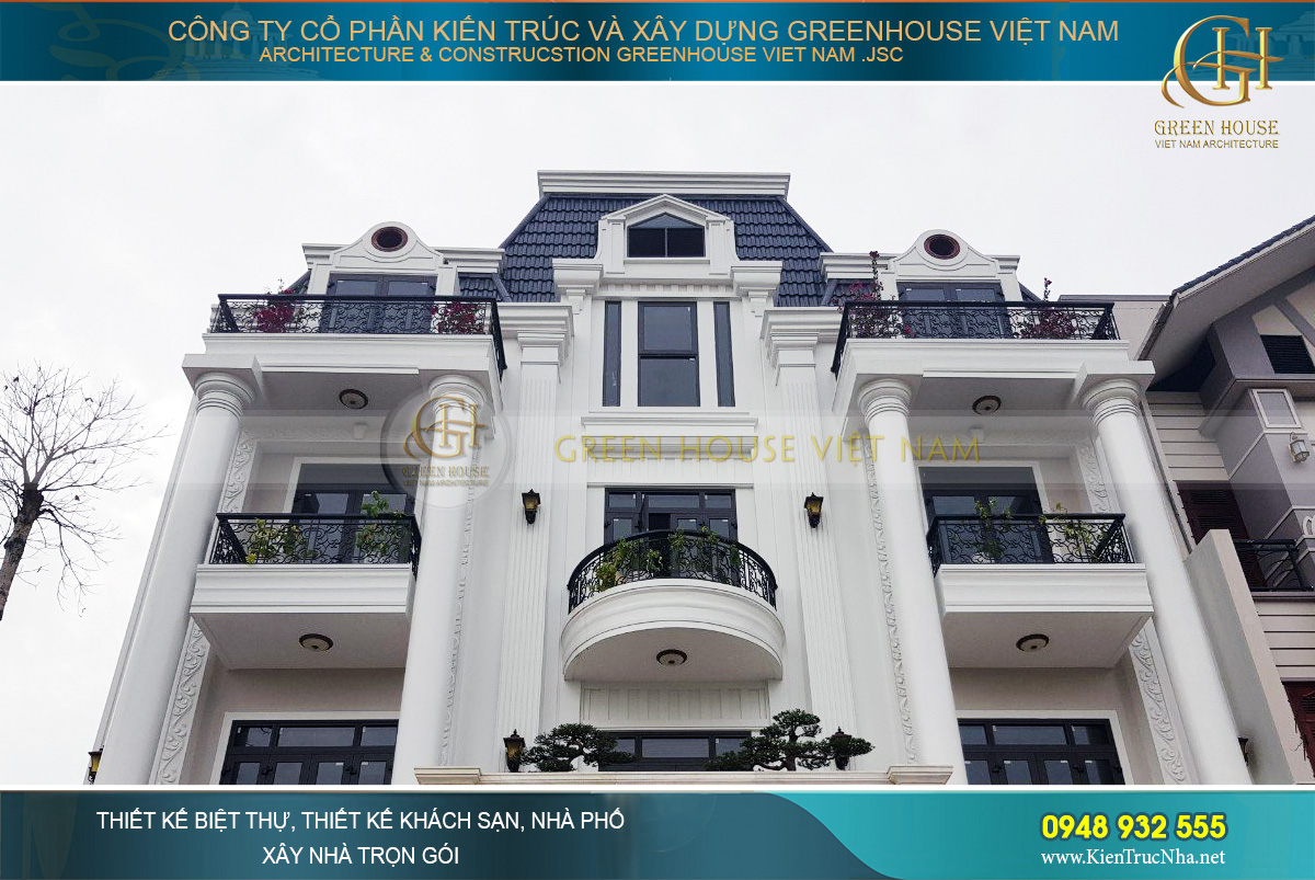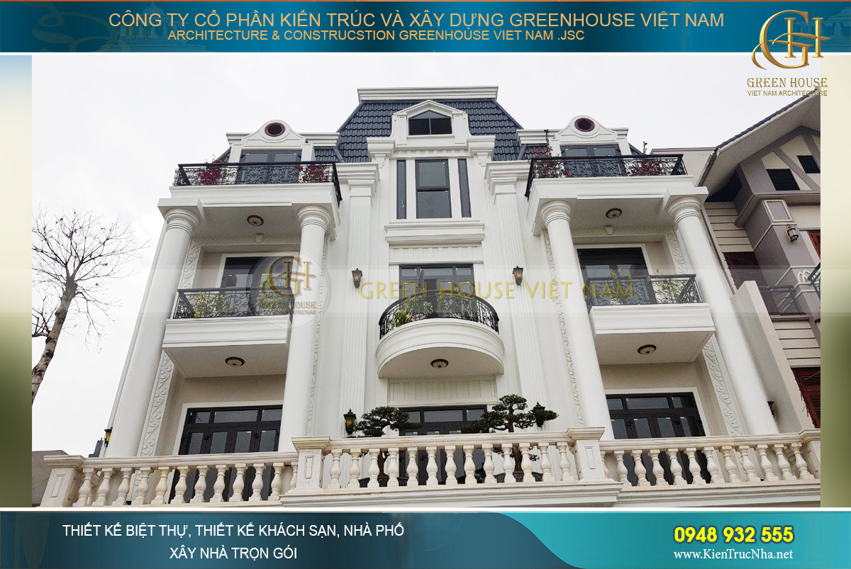 Nếu bạn cũng yêu thích lối thiết kế kiến trúc tân cổ điển cuốn hút và đẳng cấp này của Green House Việt Nam thì hãy liên hệ ngay với chúng tôi theo Hotline : 0948 932 555 để được hỗ trợ nhanh chóng nhất, các kiến trúc sư công ty tôi sẽ giúp biến ước mơ của gia đình bạn thành hiện thực.
